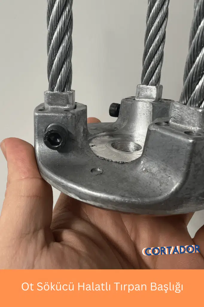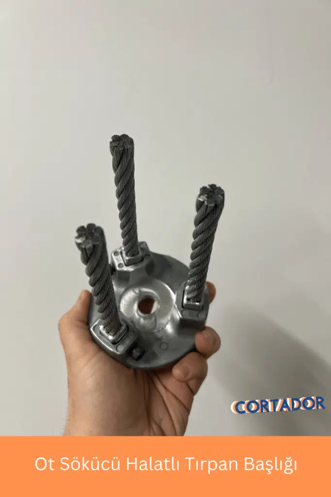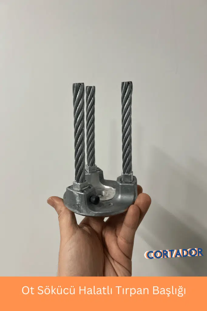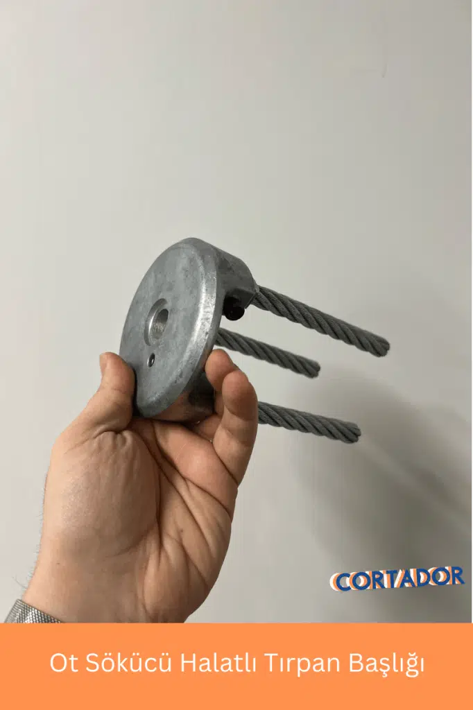 Çelik halattan imal edilmiş döküm Ot sökme kök çıkarma amaçlı tırpan başlığıdır. Standart tüm başlıklarla uyumludur.