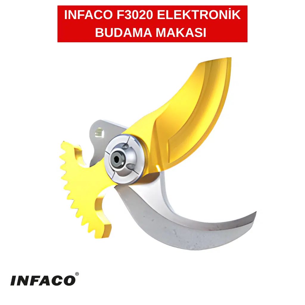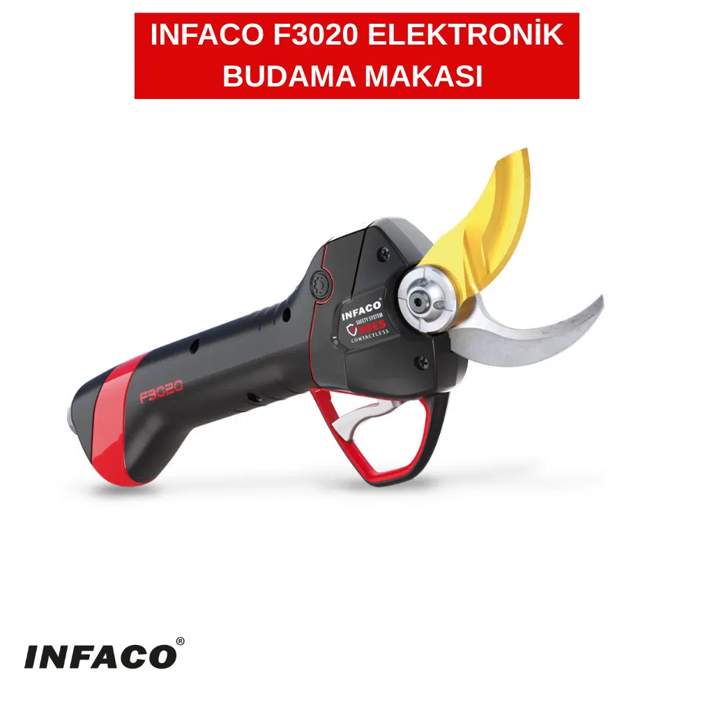 INFACO F3020, profesyonel bağcılık, zeytincilik ve meyvecilik için geliştirilmiş akülü budama makasıdır. Hafifliği, güçlü kesim kapasitesi ve uzun pil ömrü ile öne çıkar.