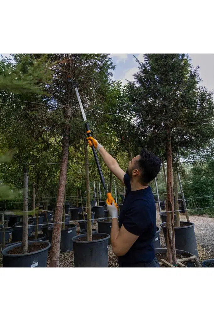 Yüksek dallarda budama işlemlerini daha güvenli ve kontrollü şekilde gerçekleştirmek için tasarlanan teleskopik yapı, sap uzunluğunun ayarlanabilmesi sayesinde farklı yüksekliklerde esnek kullanım sunar. Ø 32 mm’ye kadar taze dallarda kesim yapmaya uygun olan yapı, bahçe bakımında düzenli budama uygulamalarında pratik bir çözüm sağlar.